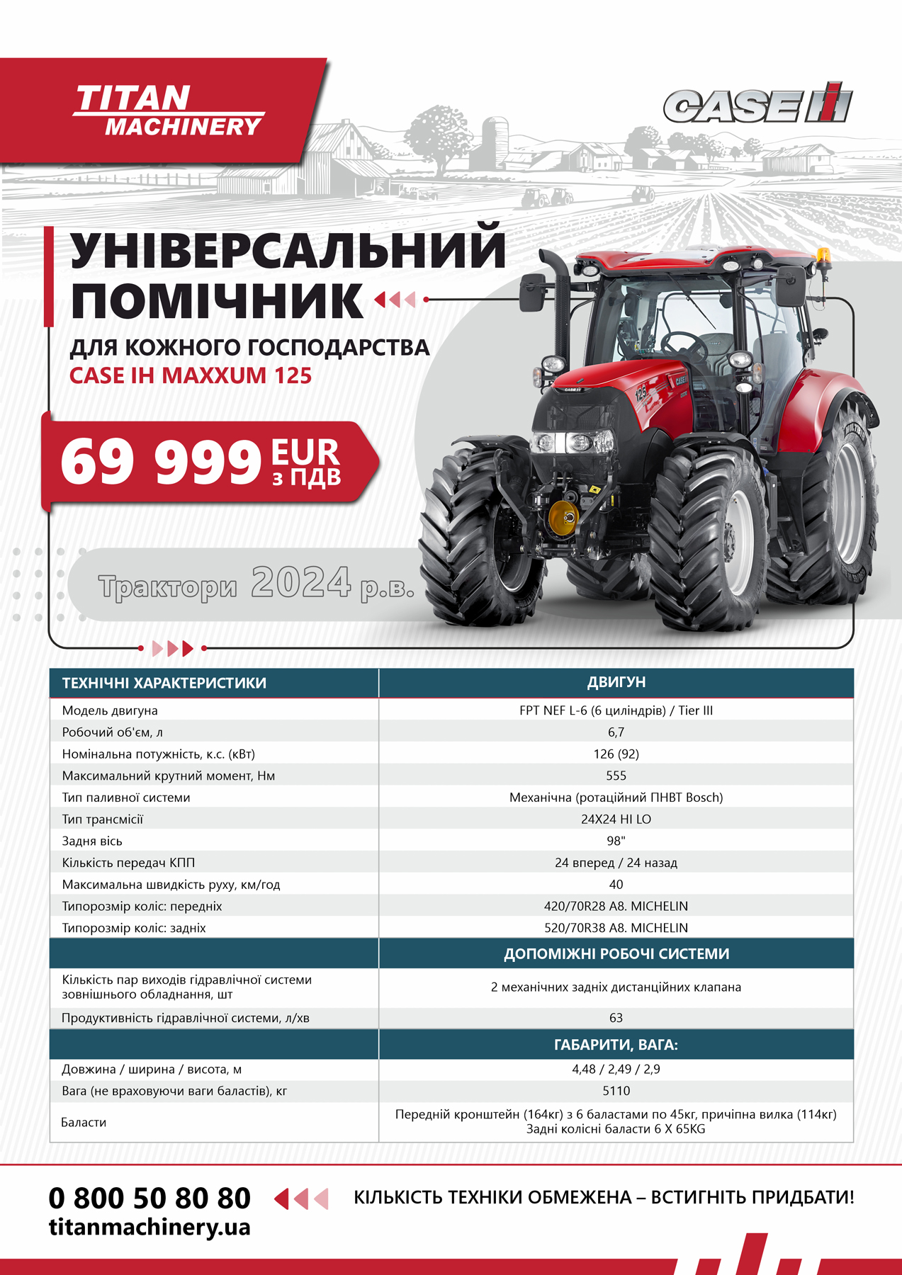 69 999 € з ПДВ — фіксована ціна на новий трактор 2024 року, без компромісів і прихованих умов.